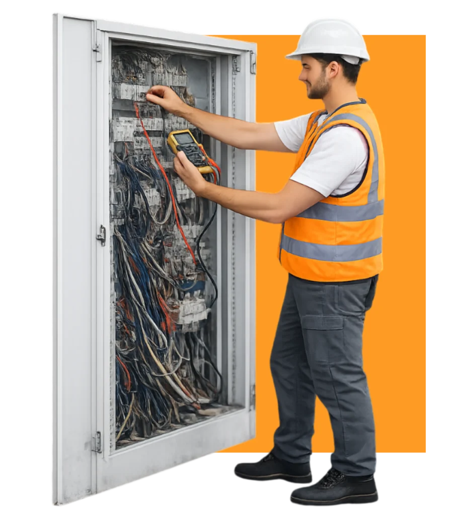 Assistência elétrica local para avarias em casa: disjuntor, curto-circuito, quadro elétrico e falta de luz (instalação interna).